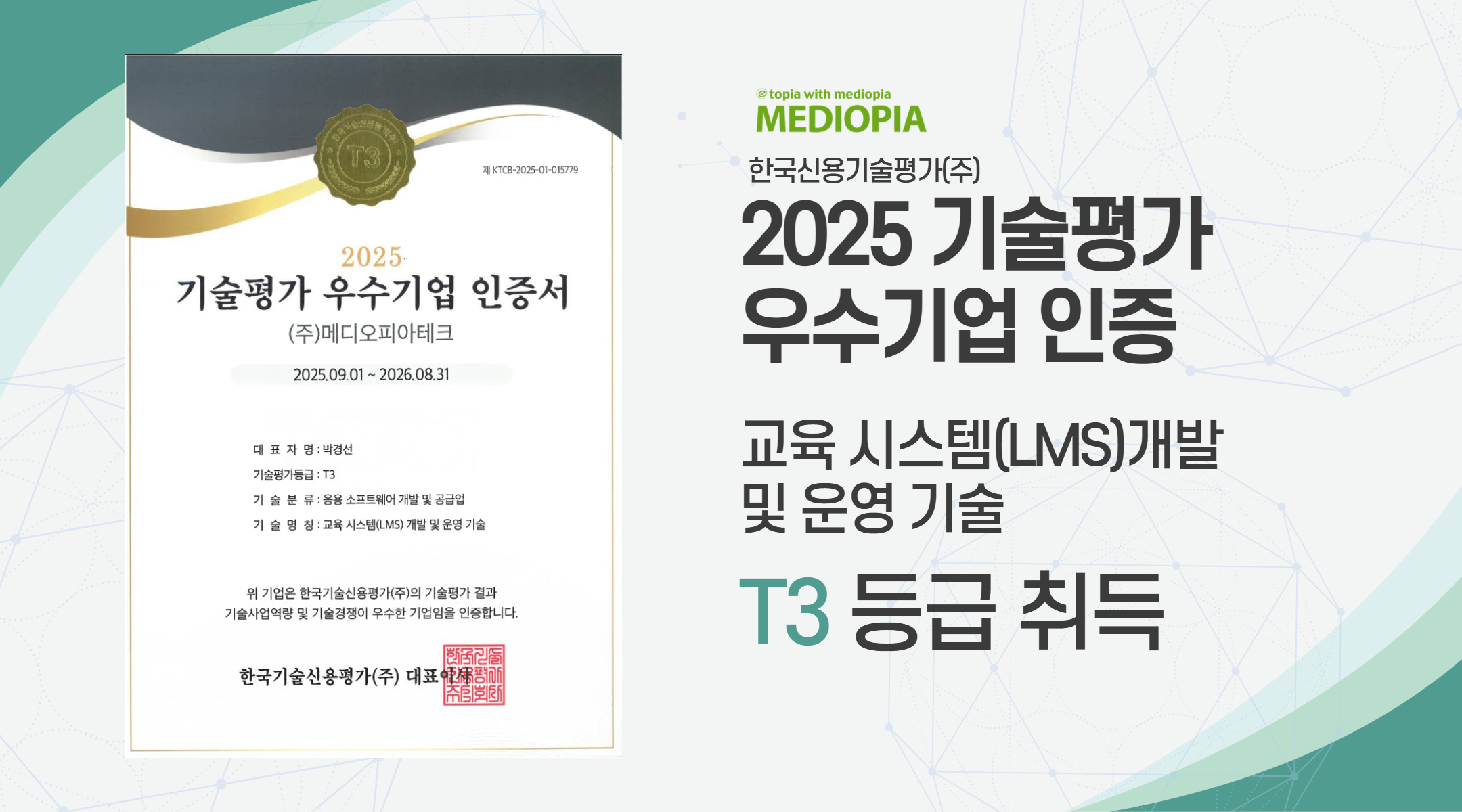 메디오피아테크는 이러닝솔루션(소프트웨어) 개발 및 공급 전문회사로 대학 및 기업 등에 관련 솔루션을 판매 및 서비스하고 있는 중견 벤처기업이다.